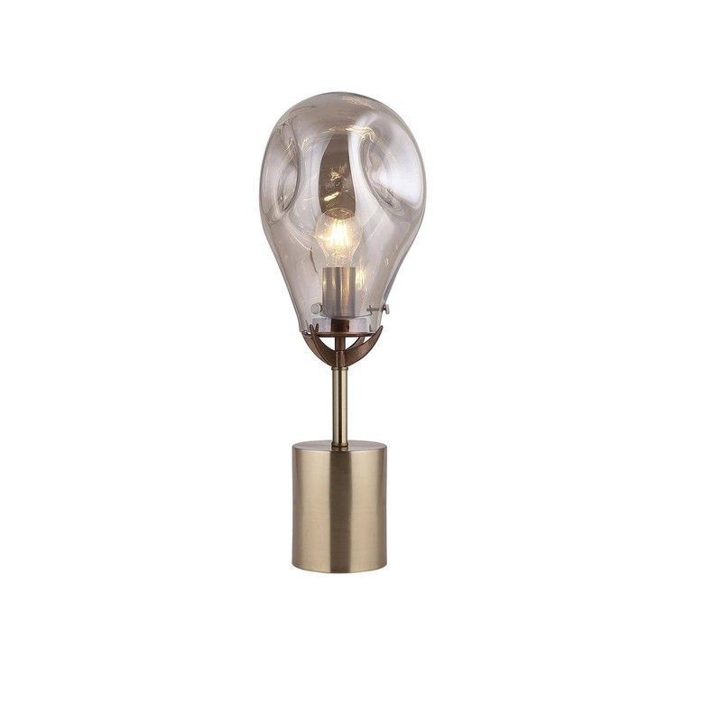 Lámpara de mesa de la colección Panist, con diseño moderno y elegante. Cuerpo de vidrio champagne con forma de globo y base cilíndrica en metal dorado. Ideal para decorar mesas de centro, escritorios o mesitas de noche. Aporta un toque sofisticado y luminoso a cualquier espacio. Dimensiones: Ø23 x 60 cm.