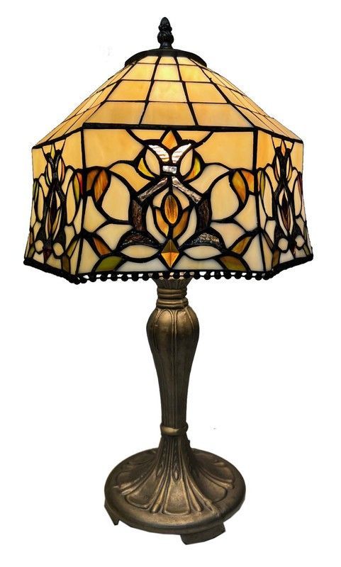 Lámpara de mesa Serie Hexa con pantalla de vidrio tallado estilo Tiffany, ideal para decorar salones, dormitorios o despachos. Con base metálica de acabado antiguo y diseño floral en tonos cálidos, aporta un toque clásico y elegante. Perfecta para crear una atmósfera acogedora y sofisticada en cualquier espacio.