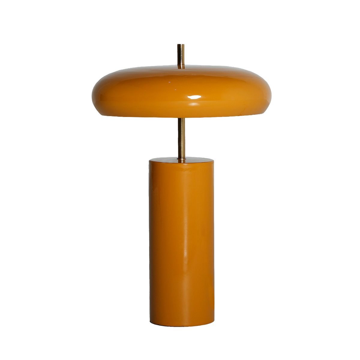 Lámpara de sobremesa Zalk en color naranja mostaza, fabricada en metal con acabado brillante. Diseño moderno y minimalista, ideal para decorar mesas de noche, escritorios o mesitas de centro. Su forma cilíndrica y pantalla en disco aportan un toque de estilo contemporáneo a cualquier espacio. Perfecta para iluminación ambiental en salones, dormitor