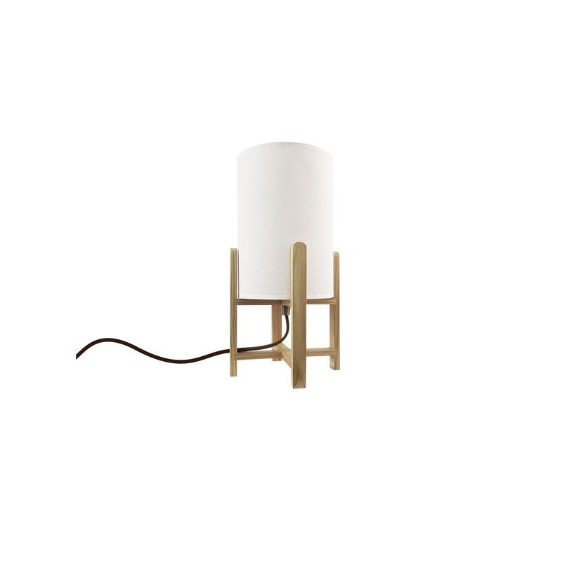 Lámpara de sobremesa DRAGO Lumiere con pantalla blanca y estructura de madera clara. Diseño minimalista y elegante, ideal para mesitas de noche, escritorios o rincones de lectura. Combina funcionalidad y estilo para espacios modernos. Cable negro incluido para fácil conexión.