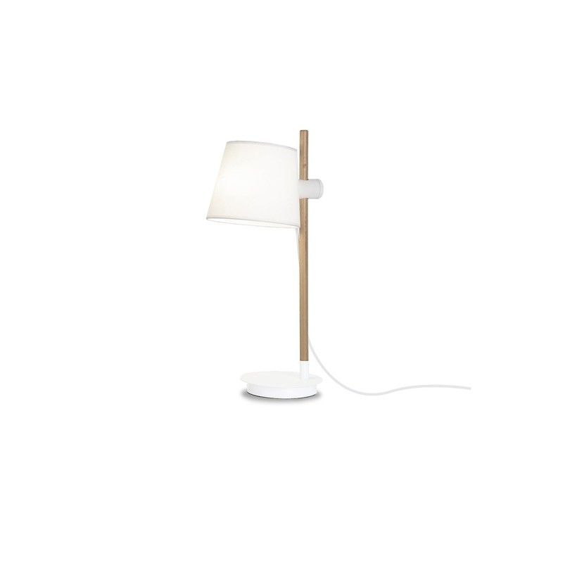 Lámpara de sobremesa MT2240-WH Lumiere con diseño minimalista y elegante. Ideal para mesitas de noche, escritorios o rincones de lectura. Estructura de madera natural y pantalla de textil blanco que difumina la luz suavemente. Base circular y cable blanco integrado. Aporta un toque de estilo escandinavo a cualquier espacio.