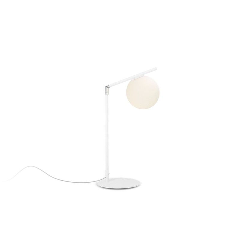 Lámpara de sobremesa MT4054-WH Lumiere en blanco, con diseño minimalista y elegante. Ideal para escritorios, mesitas de noche o espacios de trabajo. Fabricada en metal y plástico, cuenta con pantalla esférica que proporciona una luz suave y difusa. Brazo ajustable para orientar la iluminación según necesites. Un toque de estilo y funcionalidad para