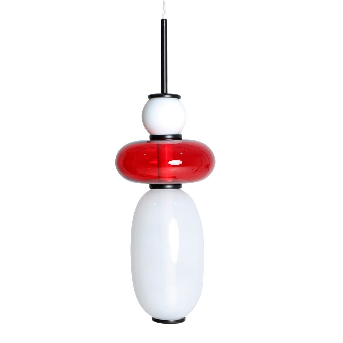 Lámpara de techo de cristal en blanco y rojo, 15 x 15 x 55 cm | Larisa