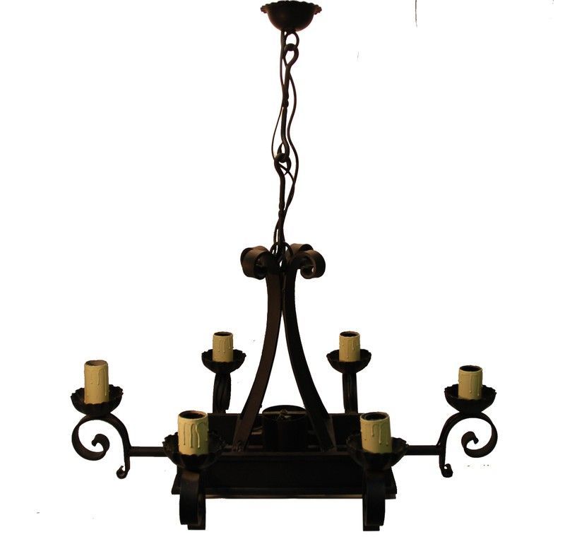 Lámpara de techo en forja artesana de 7 luces (6+1) color negro