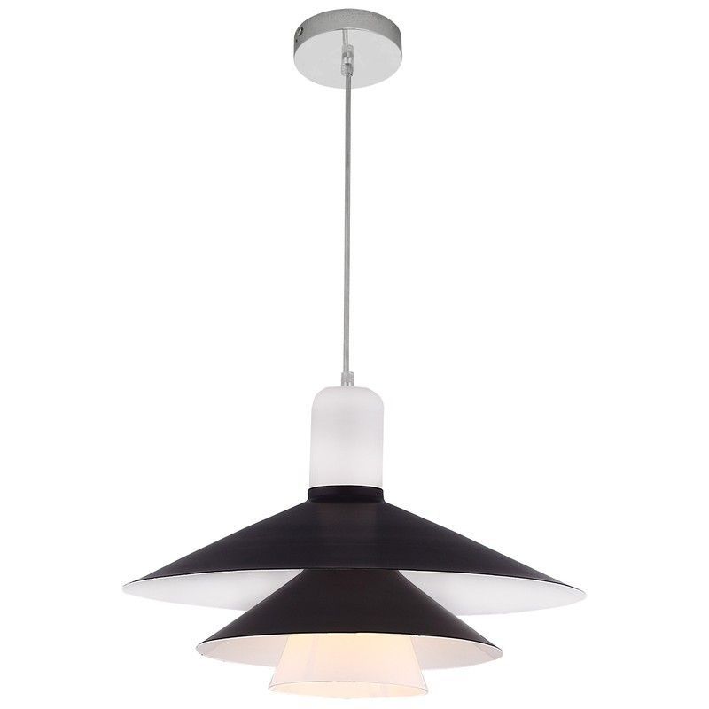 Lámpara de techo de diseño moderno con doble pantalla cónica en negro y blanco, ideal para cocinas, comedor o espacios de estilo escandinavo. Fabricada en vidrio y metal, con acabado plateado y difusor opalino que suaviza la luz. Perfecta para crear un ambiente acogedor y sofisticado en tu hogar.