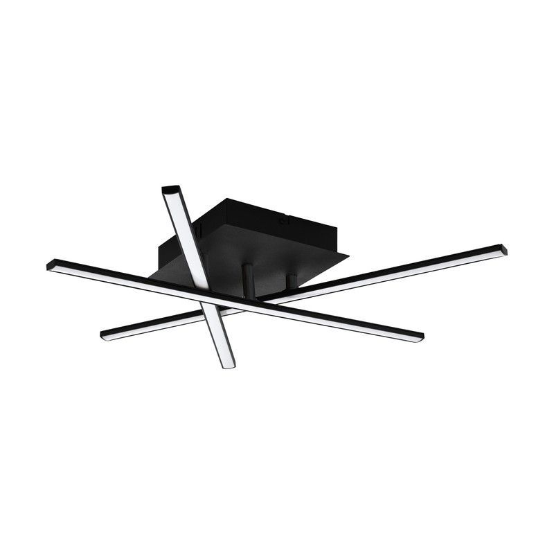 Lámpara de techo plafón Lasana 3 en color negro con acabado metálico plateado. Diseño moderno y minimalista con forma de cruz, ideal para salones, comedor o espacios contemporáneos. Fabricada en metal y acero inoxidable, ofrece una iluminación LED uniforme y elegante. Perfecta para interiores con estilo industrial o escandinavo.