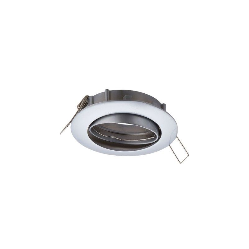 Lámpara empotrable ARO AHD251-SG Lumiere, ideal para iluminación interior en techos. Diseño moderno y minimalista con acabado blanco y gris. Fabricada en acero inoxidable y plástico resistente. Fácil instalación gracias a sus bisagras laterales. Perfecta para salones, dormitorios o cocinas que buscan un toque elegante y funcional.