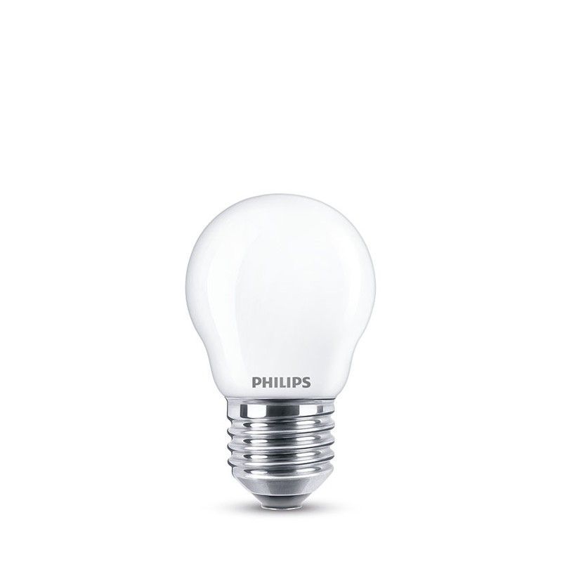 Forma de globo pequeñoBase de rosca e14 metálicaLogotipo philips impreso en el vidrio