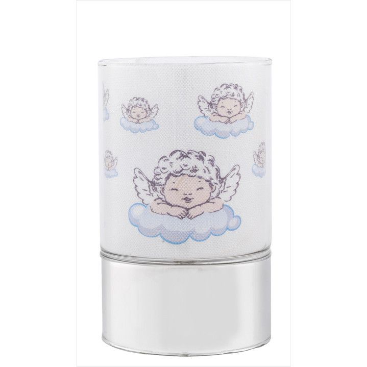 Lámpara de ambiente para niños con diseño encantador de ángeles sobre nubes celestes. Ideal para habitaciones infantiles, crea un ambiente cálido y acogedor. Fabricada con plástico de calidad y base metálica brillante. Perfecta como luz nocturna o decoración suave para dormir con tranquilidad.