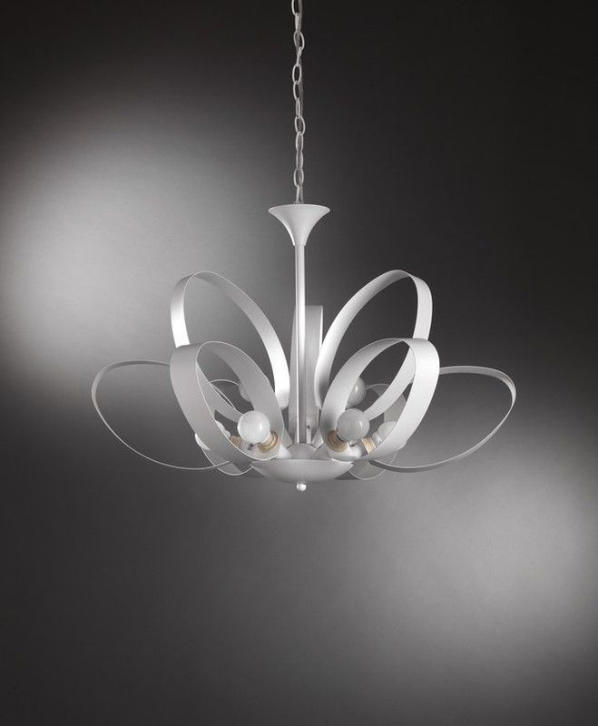 Lámpara colgante Serie Serena Onli con 9 luces, diseño moderno y sofisticado en acabado blanco y plateado. Fabricada en metal, ideal para espacios como salones, comedor o vestíbulos. Su estructura con anillos curvos y bombillas esféricas aporta un toque de elegancia y luz ambiental. Perfecta para decorar interiores con estilo contemporáneo.