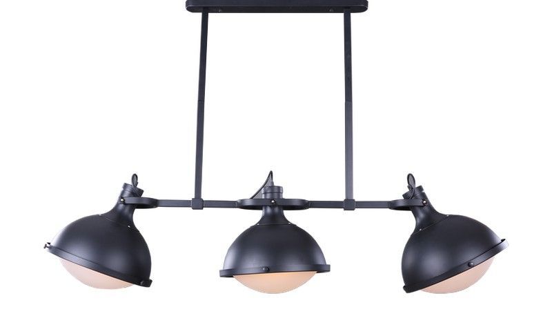 Lámpara colgante Ivintage con 3 luces, diseño industrial vintage en acabado negro mate. Ideal para cocinas, comedor o espacios con estilo retro. Fabricada en metal resistente, con cúpulas de vidrio opalino que difuminan la luz cálida. Perfecta para crear un ambiente acogedor y con personalidad.