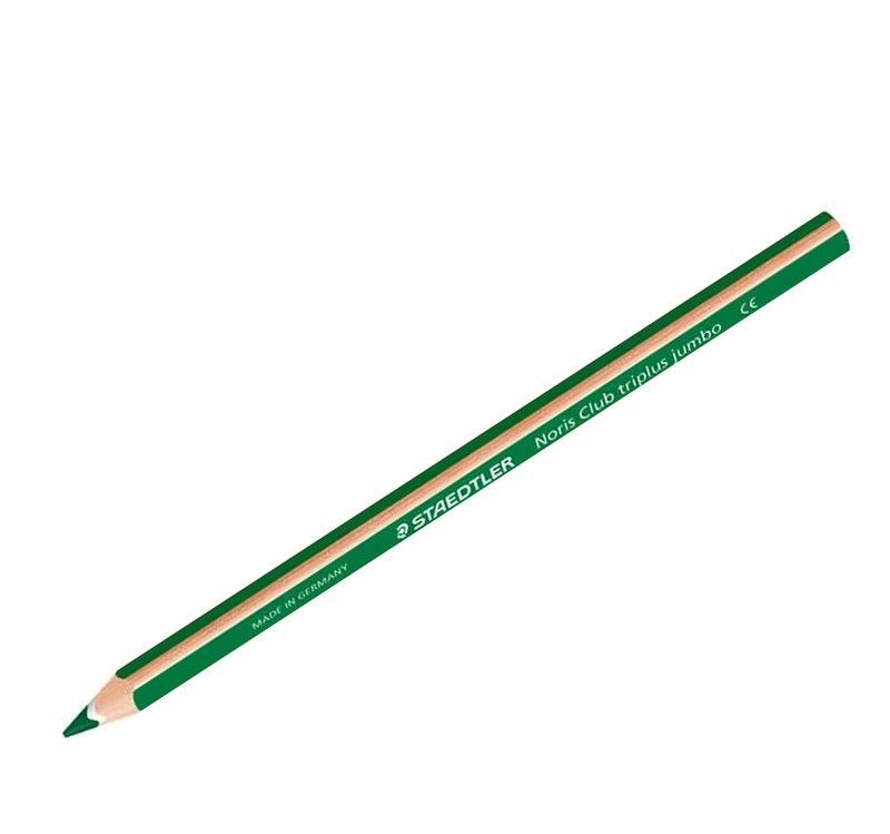 Lápiz color verde oscuro triangular NORIS JUMBO de Staedtler, perfecto para escritura y dibujo, fabricado en Alemania.