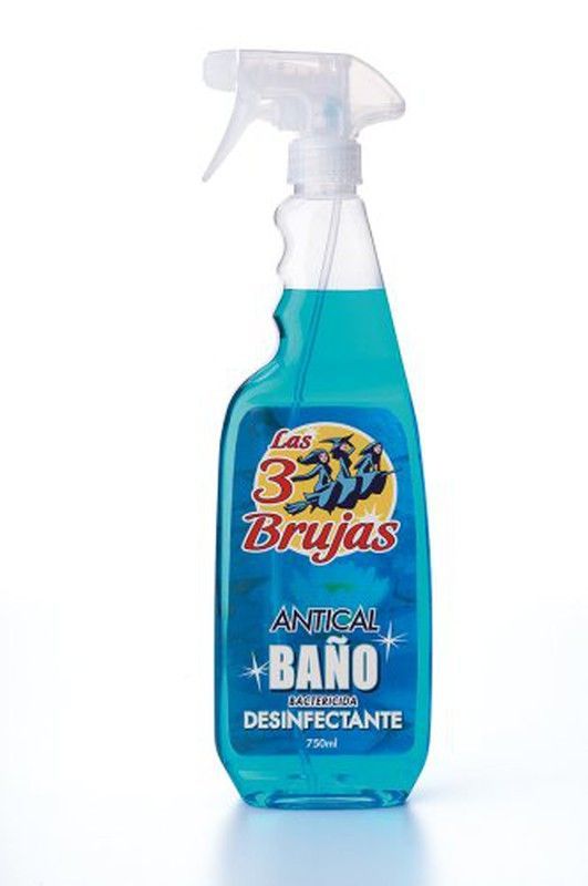 Desinfectante para baño de la marca Las 3 Brujas, en práctico envase de 750ml con spray. Elimina el cal y desinfecta eficazmente superficies del baño. Ideal para mantener tu hogar limpio y libre de bacterias. Fórmula potente y fácil de usar.