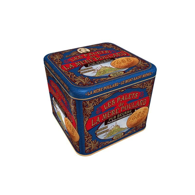 Lata de galletas Palets de mantequilla de La Mère Poulard, originarias de Normandía. Con un diseño elegante y tradicional, esta lata contiene 500 gramos de galletas francesas de alta calidad, ideales para disfrutar como merienda o regalo gourmet. Perfectas para amantes de los productos artesanales y del sabor auténtico de la mantequilla.