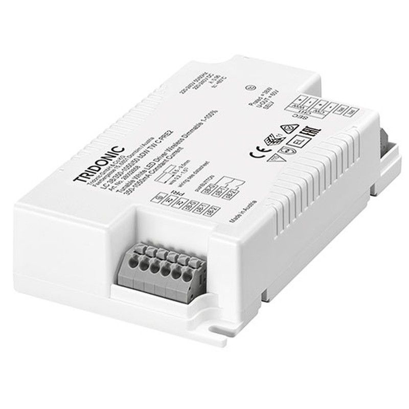 Driver LED TIDONIC LC 38/350-1050/50 Bdw Tw C Pre2, ideal para iluminación profesional y residencial. Conecta fácilmente a sistemas de iluminación LED con salida de 350-1050 mA. Diseño compacto y robusto en plástico, con montaje en carril DIN. Incluye protección contra sobretensión y sobrecorriente. Perfecto para lámparas LED de alta potencia en in