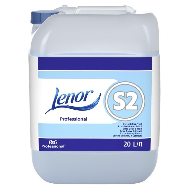 Suavizante Lenor S2 Professional de 20 litros, ideal para sistemas de lavado industriales. Fórmula profesional que aporta suavidad y frescor excepcionales a la ropa. Diseñado para uso en lavanderías comerciales y hoteles. Envase práctico y resistente para un uso continuo y eficiente.