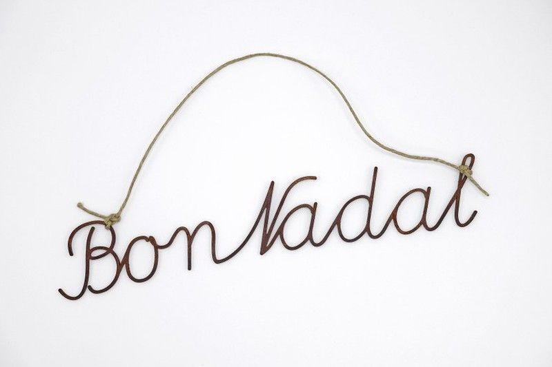 Letrerito decorativo 'Bon Nadal' en caligrafía, fabricado en metal con acabado marrón, ideal para decorar tu hogar en Navidad. Incluye cuerda para colgarlo fácilmente. Un toque elegante y festivo para tus celebraciones navideñas.