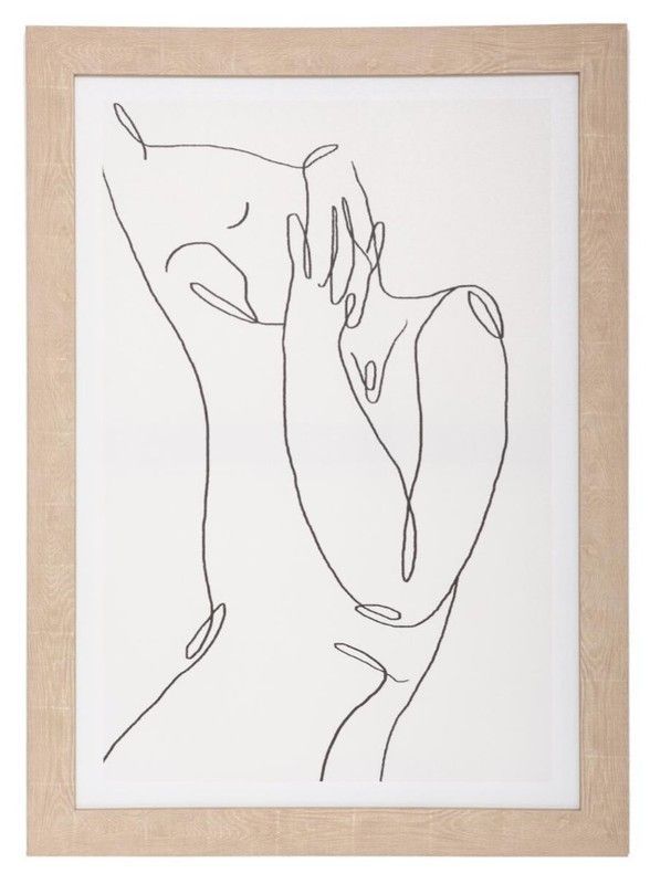 Lienzo impreso enmarcado con diseño abstracto de silueta femenina en estilo lineal minimalista. Ideal para decorar salas, dormitorios o espacios con estilo contemporáneo. Fabricado con lona de alta calidad y marco de madera clara. Aporta elegancia y sofisticación a cualquier ambiente. Dimensiones: 50 x 70 cm.