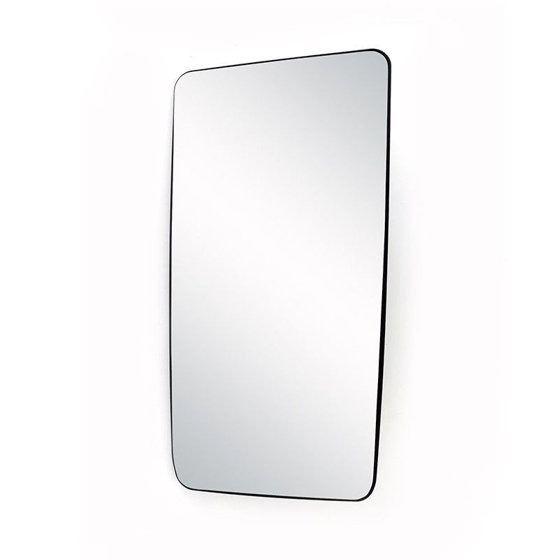 Espejo rectangular con bordes redondeadosMarco negro delgadoSuperficie reflectante brillanteDiseño minimalista y moderno