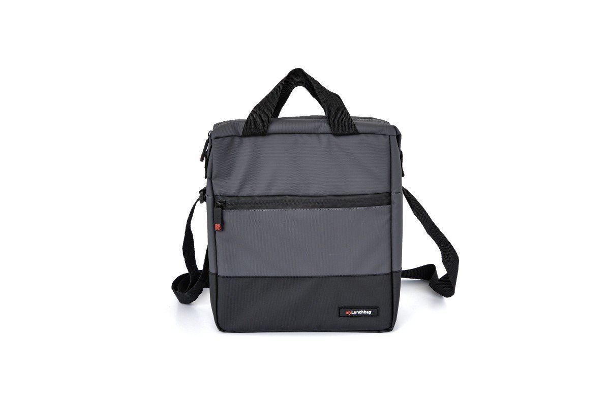 Lunchbag Portacomidas Iris Urban Titan Gris: bolsa práctica y elegante para llevar el almuerzo al trabajo o a la escuela. Fabricada en poliéster resistente, con diseño bicolor gris y negro, cierre con cremallera y bolsillo frontal. Incluye asa superior y correa de hombro ajustable para mayor comodidad. Ideal para adultos que buscan estilo y funcion
