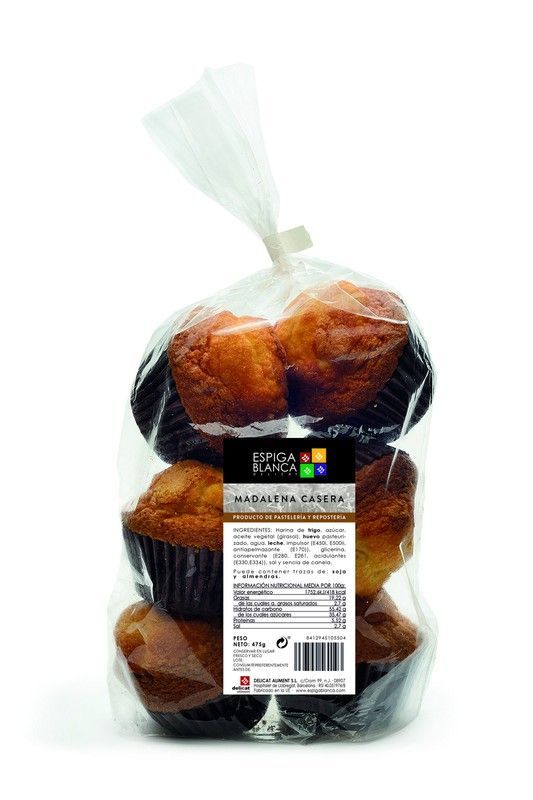 Madalenas caseras de 475g en paquete transparente, ideales para disfrutar como merienda o acompañamiento de café. Con textura esponjosa y dorada, elaboradas con ingredientes seleccionados. Perfectas para el hogar, oficina o como regalo. Producto de panadería artesanal, listo para consumir.