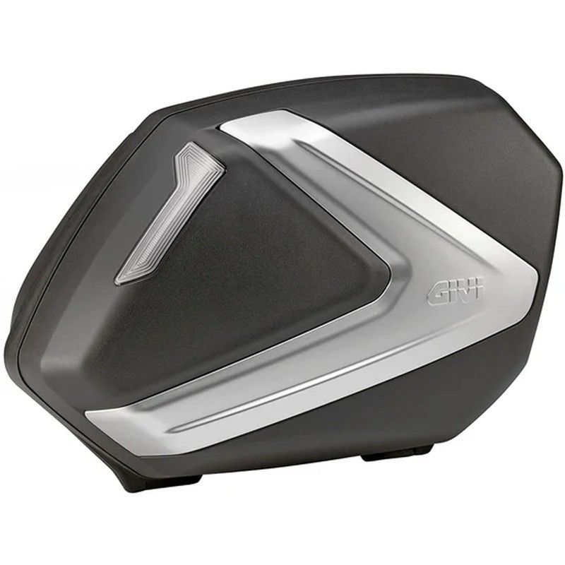 Maletas laterales Givi V37N Tech, ideales para motocicletas, con diseño aerodinámico y acabado en negro mate con detalles plateados. Fabricadas en plástico resistente y acero inoxidable, ofrecen gran capacidad y seguridad. Perfectas para viajes largos y uso diario, con un estilo moderno y funcional. Pack de 2 unidades.