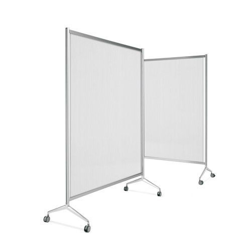 Mampara de protección "Ten-Limit" policarbonato acanalado translúcido 100 x 150 cm. con ruedas. Altura total 175 cm.