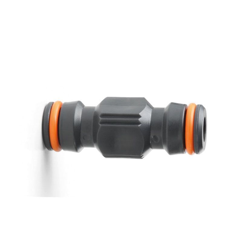 Manguito unión simple Lista Water Cy, ideal para sistemas de riego en jardín. Fabricado en plástico resistente, con anillos naranjas para un sellado seguro. Fácil instalación y conexión rápida entre mangueras. Perfecto para mantener tu jardín bien regado con eficiencia y durabilidad.