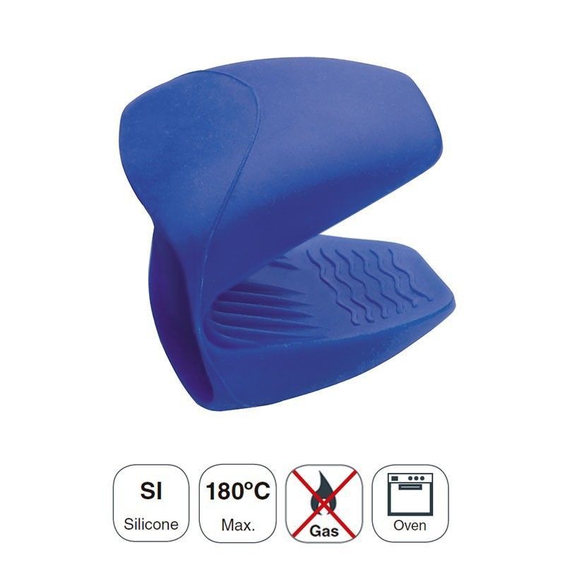 Manopla de silicona Lacor en color azul, ideal para manipular sartenes y ollas calientes en el hogar. Fabricada en silicona de alta calidad, resistente hasta 180°C y apta para uso en horno. Su diseño ergonómico con textura antideslizante ofrece un agarre seguro y cómodo. Perfecta para cocineros que buscan protección y comodidad en la cocina.