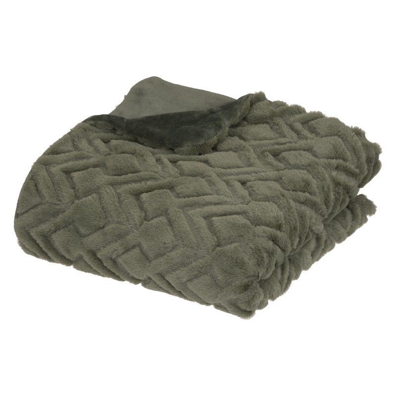 Manta Mara de color verde con diseño geométrico trenzado, ideal para añadir calidez y estilo a tu hogar. Confeccionada en poliéster suave y acogedor, perfecta para usar en el sofá, cama o como complemento decorativo. Su textura acolchada y suave la convierte en una opción cómoda y elegante para cualquier estancia.