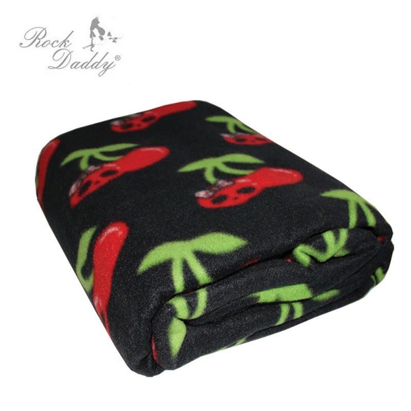 Manta de pelo con estampado de cerezas rojas y hojas verdes sobre fondo negro, ideal para decorar tu hogar o disfrutar de momentos cálidos. Hecha en poliéster suave y acogedor, perfecta para sofás, camas o como complemento decorativo. Con sus 160x120 cm, ofrece comodidad y estilo en cada uso.