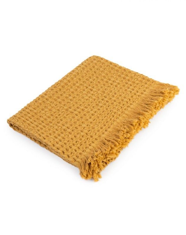 Manta Petit Praia Bee en color mostaza, ideal para bebés y niños pequeños. Confeccionada en algodón suave y tejido grueso, ofrece calidez y comodidad. Los bordes con flecos añaden un toque decorativo y acogedor. Perfecta para envolver al bebé o como complemento decorativo en la habitación infantil.