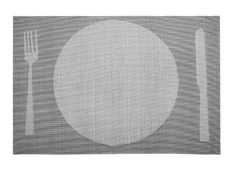 Mantel individual Samet de Lacor, con diseño elegante en tonos gris y blanco. Fabricado en lino, presenta un estampado de rayas horizontales y detalles de vajilla en silueta. Ideal para decorar mesas con estilo y funcionalidad. Perfecto para uso diario o ocasiones especiales en el hogar.