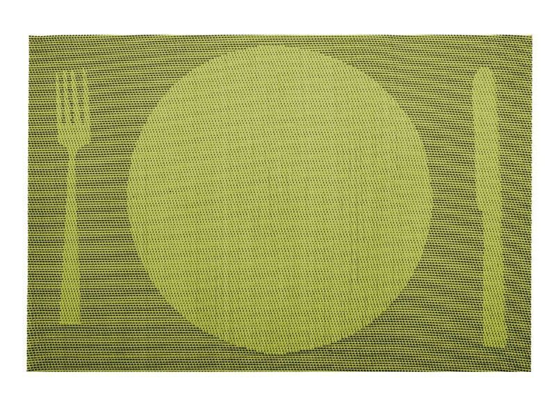 Mantel individual Samui de 45x30 cm en color verde, con diseño elegante y textura de rayas horizontales. Ideal para decorar tu mesa con estilo y funcionalidad. Fabricado en poliéster resistente, fácil de limpiar y perfecto para uso diario o ocasiones especiales. Incluye detalles de tenedor y cuchillo en los laterales, añadiendo un toque sofisticado