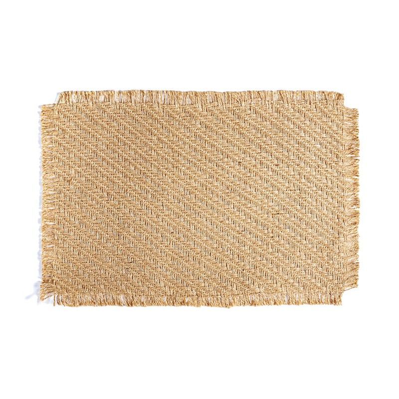 Mantel individual de yute natural de 30x45 cm, ideal para decorar mesas con estilo rústico y elegante. Su textura tejida y bordes deshilachados aportan un toque bohemio y sofisticado. Perfecto para uso diario o en ocasiones especiales, fácil de limpiar y resistente. Adecuado para hogares que buscan productos naturales y sostenibles.