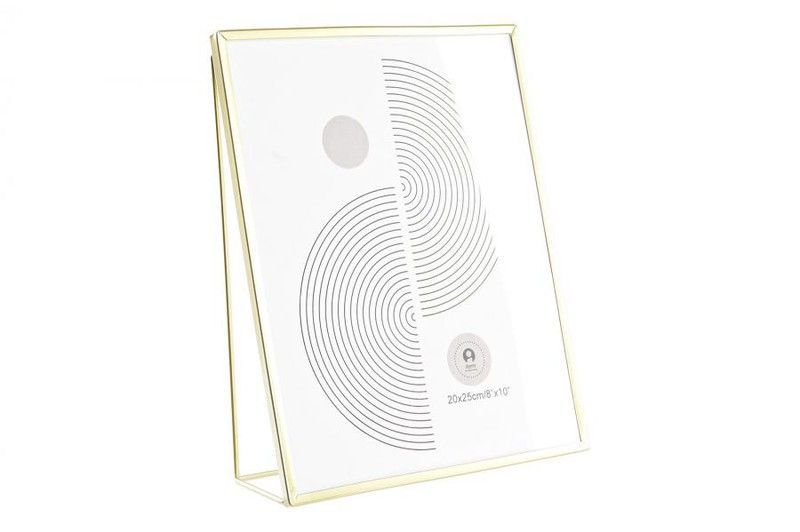 Marco moderno para fotos de 20x25 cm con acabado en metal dorado y cristal transparente. Diseño minimalista con líneas concéntricas estampadas, ideal para decorar tu hogar con estilo. Perfecto para fotos, tarjetas o pequeñas obras de arte. Fácil de colocar sobre mesas o estanterías gracias a su soporte trasero. Calidad duradera y elegante para cual