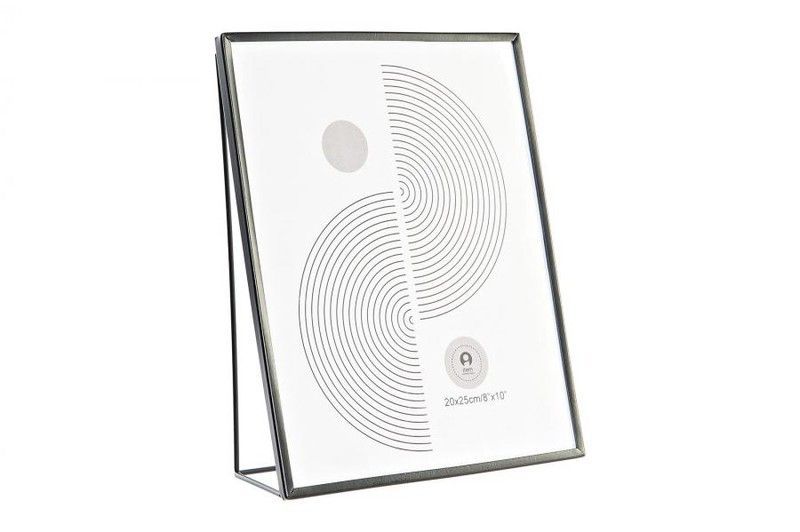 Marco moderno para fotos de 15x20 cm, fabricado en metal negro y cristal transparente. Diseño elegante y minimalista con soporte incorporado para colocarlo sobre mesas o estanterías. Ideal para decorar el hogar o oficina con estilo. Incluye diseño gráfico interior con círculos concéntricos que aportan un toque artístico. Perfecto para fotos, dibujo