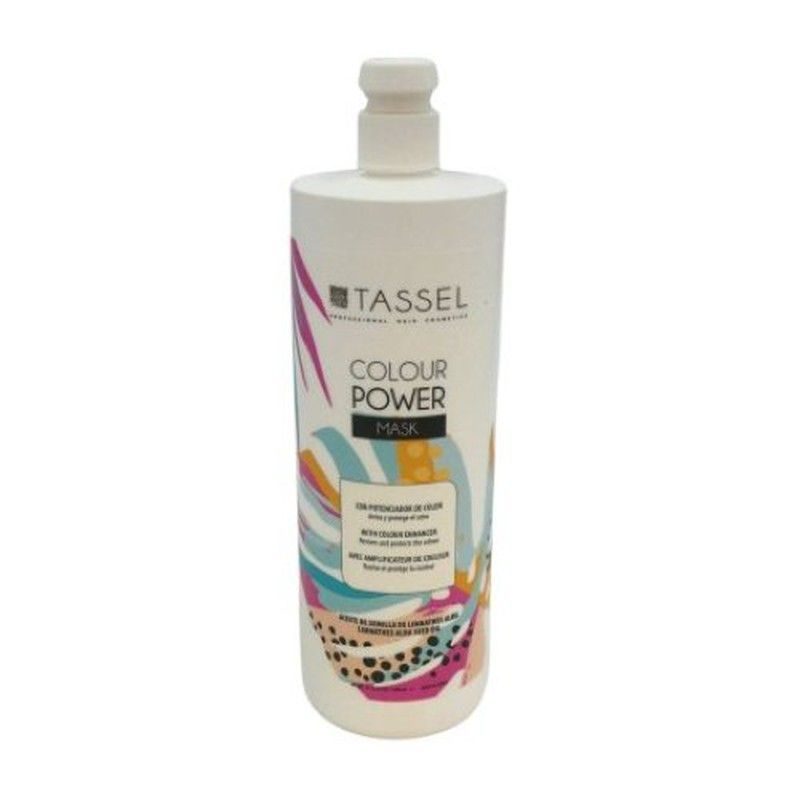 Mascarilla profesional para cabello teñido de la marca TASSEL, en formato de 1 litro. Formulada con protección de color y antioxidantes para mantener el tono vibrante y la salud del cabello. Ideal para quienes buscan intensificar el brillo y la durabilidad del color. Aplicar después del champú y dejar actuar según indicaciones. Envase práctico con