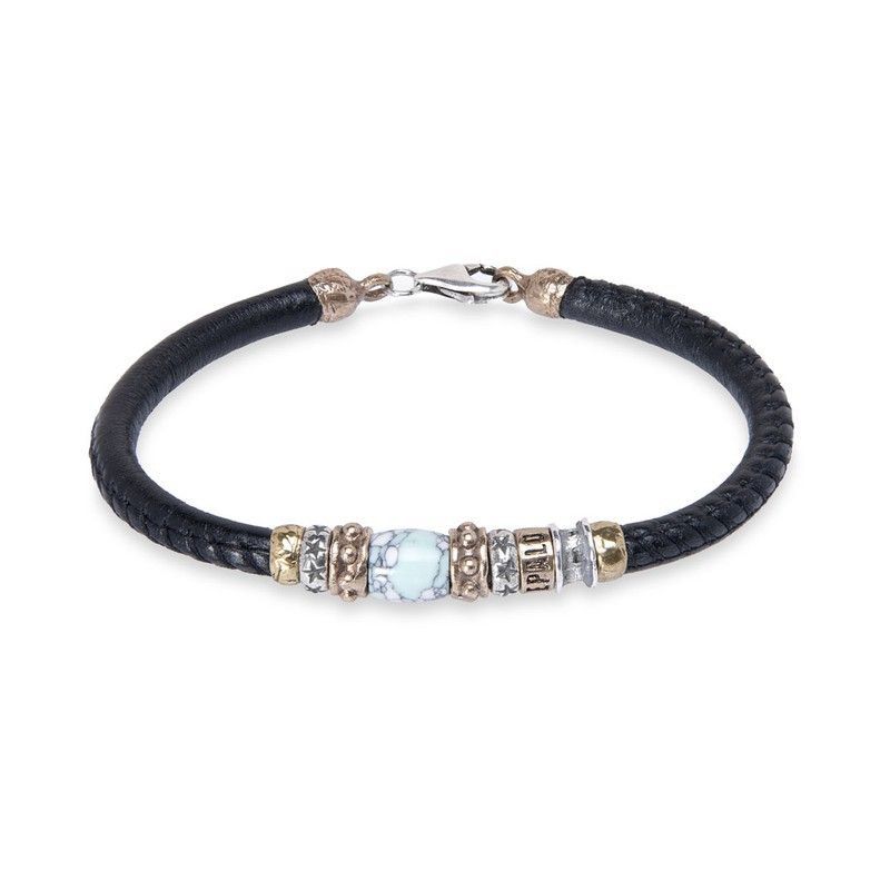 MB188X Pulsera Plata de Palo modelo Homa de cuero para hombre con pieza central color mármol