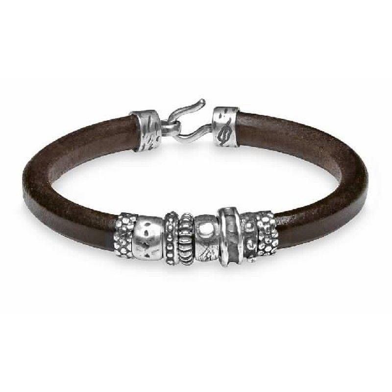 MB19D Pulsera hombre Plata de Palo hecha de plata y cuero