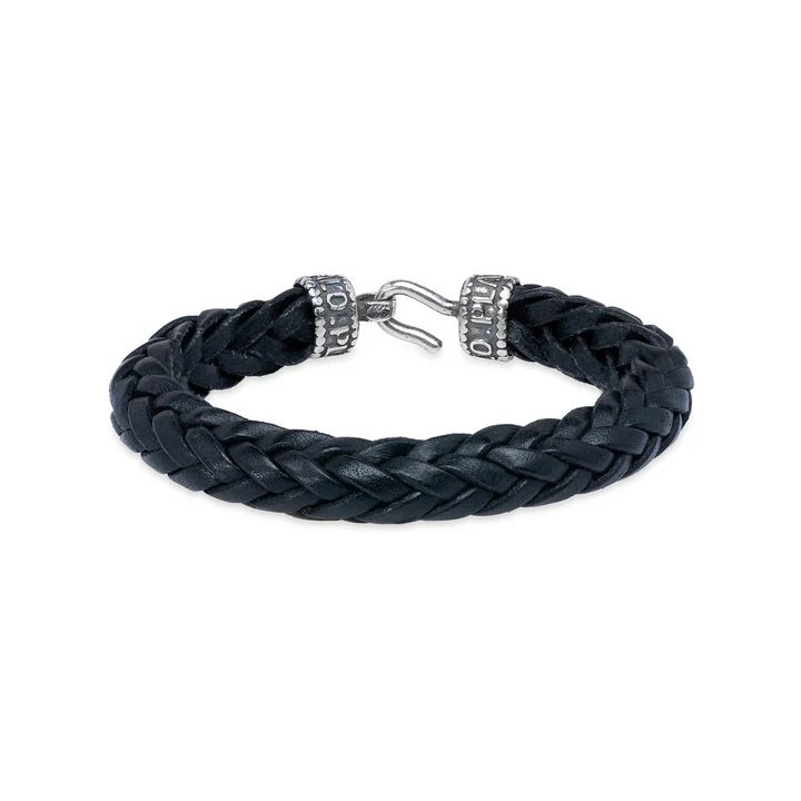 | Nombre | MB240X Pulsera PLATA DE PALO estilosa hombre de cuero negro trenzado cierre de gancho en plata de ley — 23cm |
