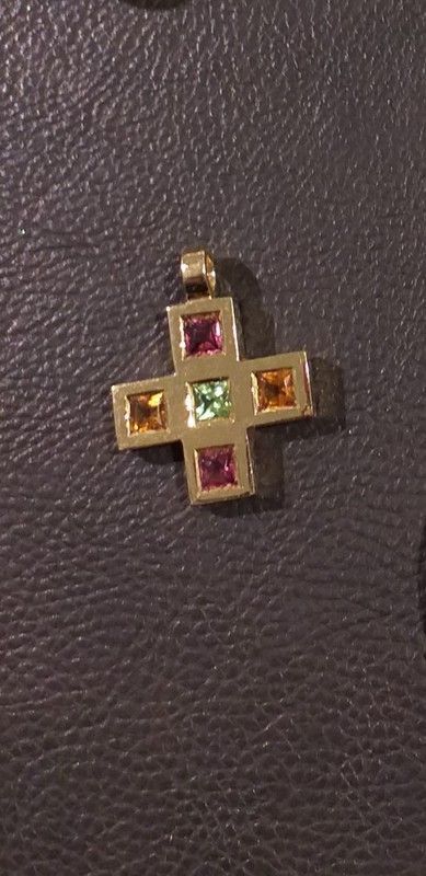 | Nombre | MC003 Colgante de oro cruz con piedras preciosas de color |