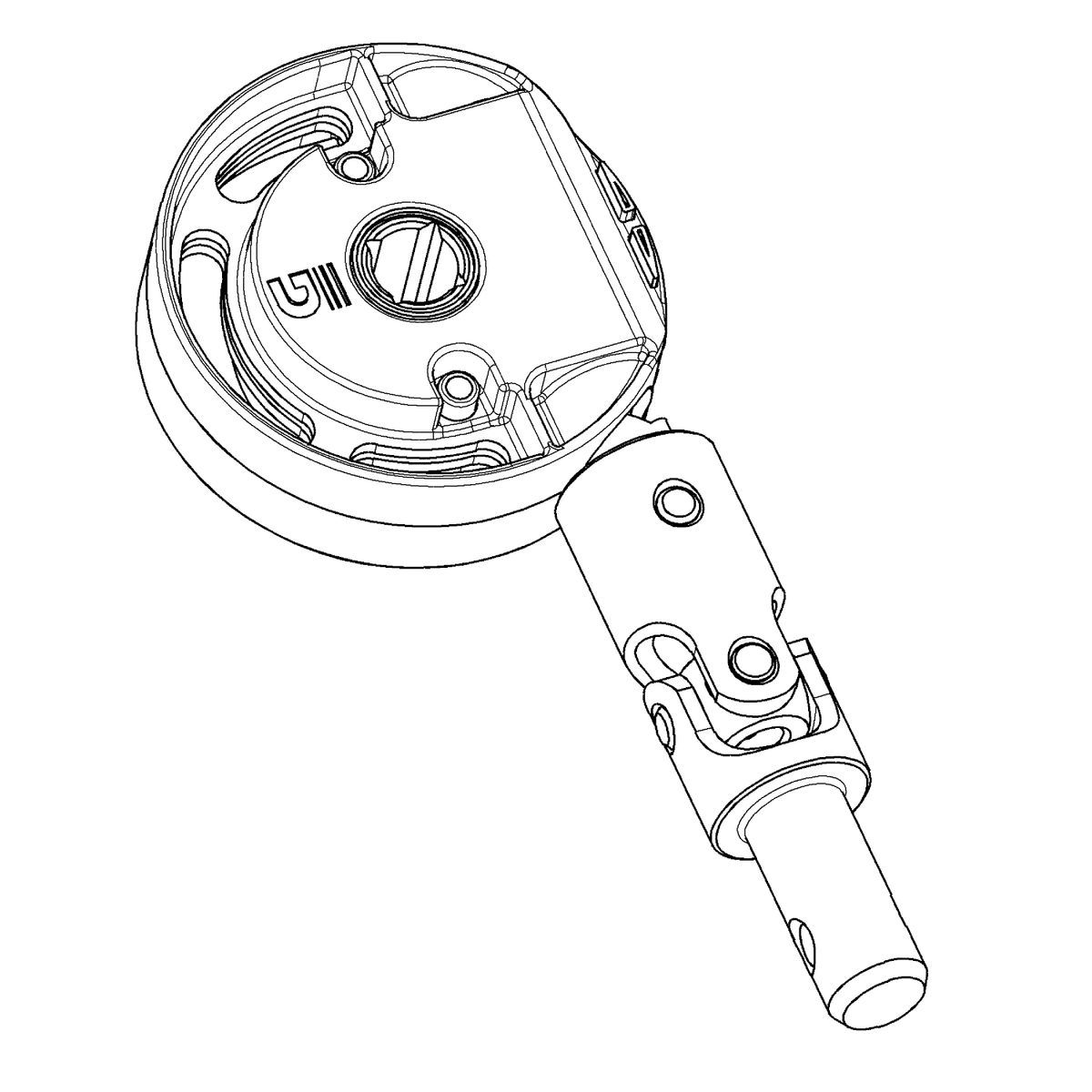 Mecanismo cardan SIN FIN para CORTINA enrollable hasta 8 kg. - R: 2,8/1 - rótula con macho Ø 9,9 mm. para tubo manivela Ø 10 mm interior. - Entrada axial para perno cuadrado 7 mm.