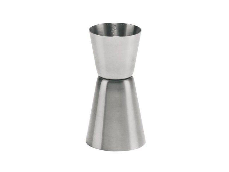 Medidor de bar de acero inoxidable con diseño clásico de doble cono, ideal para medir con precisión ingredientes en cócteles y bebidas. Perfecto para bartenders profesionales o aficionados que buscan calidad y durabilidad. Incluye marcas de capacidad en el interior para una medición exacta de 5 cl.