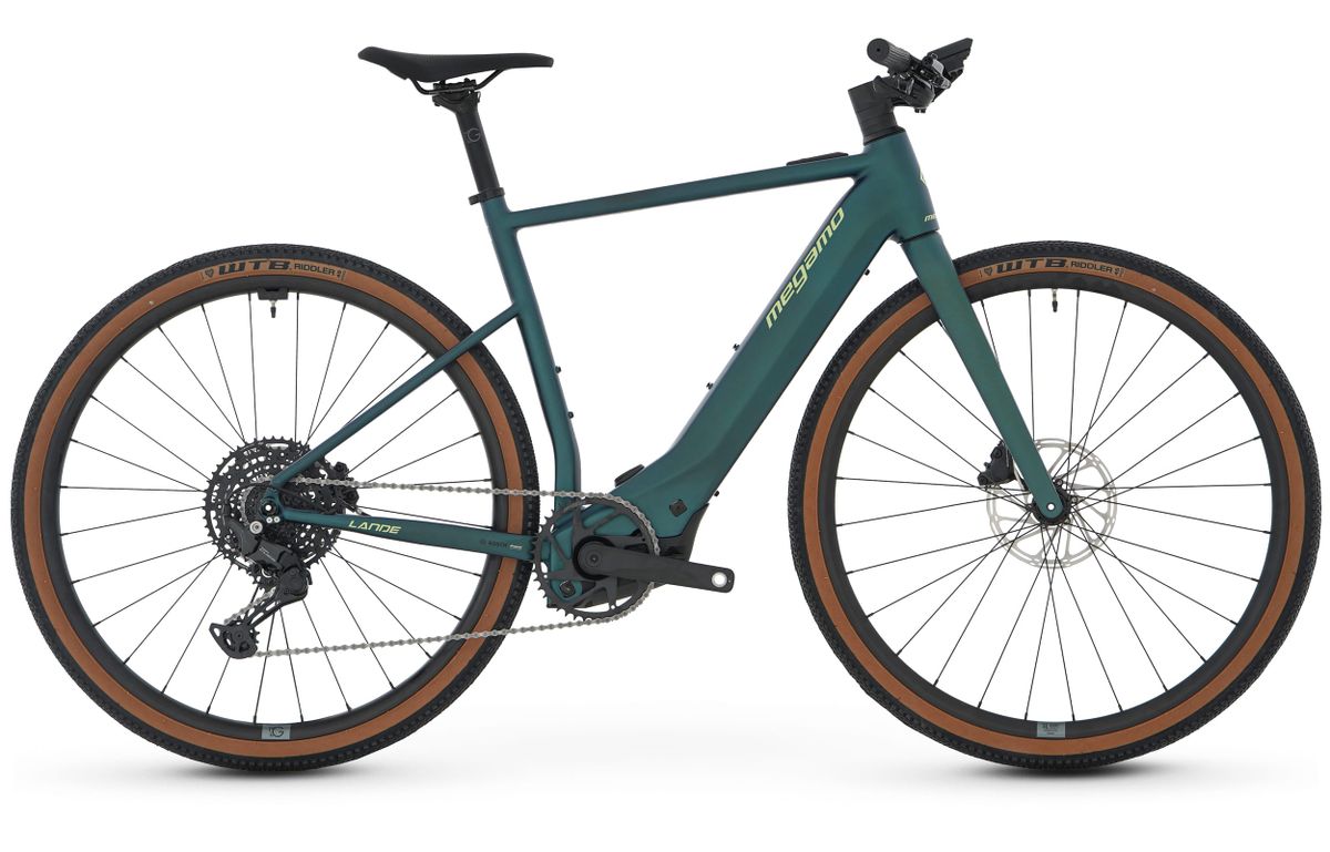 Bicicleta Megamo Lande Flat Bar 2025, ideal para ciclismo urbano y senderos. Cuadro de aluminio resistente, manillar plano para mayor control y comodidad, y ruedas con neumáticos de caucho para tracción óptima. Equipada con frenos de disco y transmisión de 12 velocidades. Diseño moderno y funcional, perfecta para adultos que buscan movilidad sosten