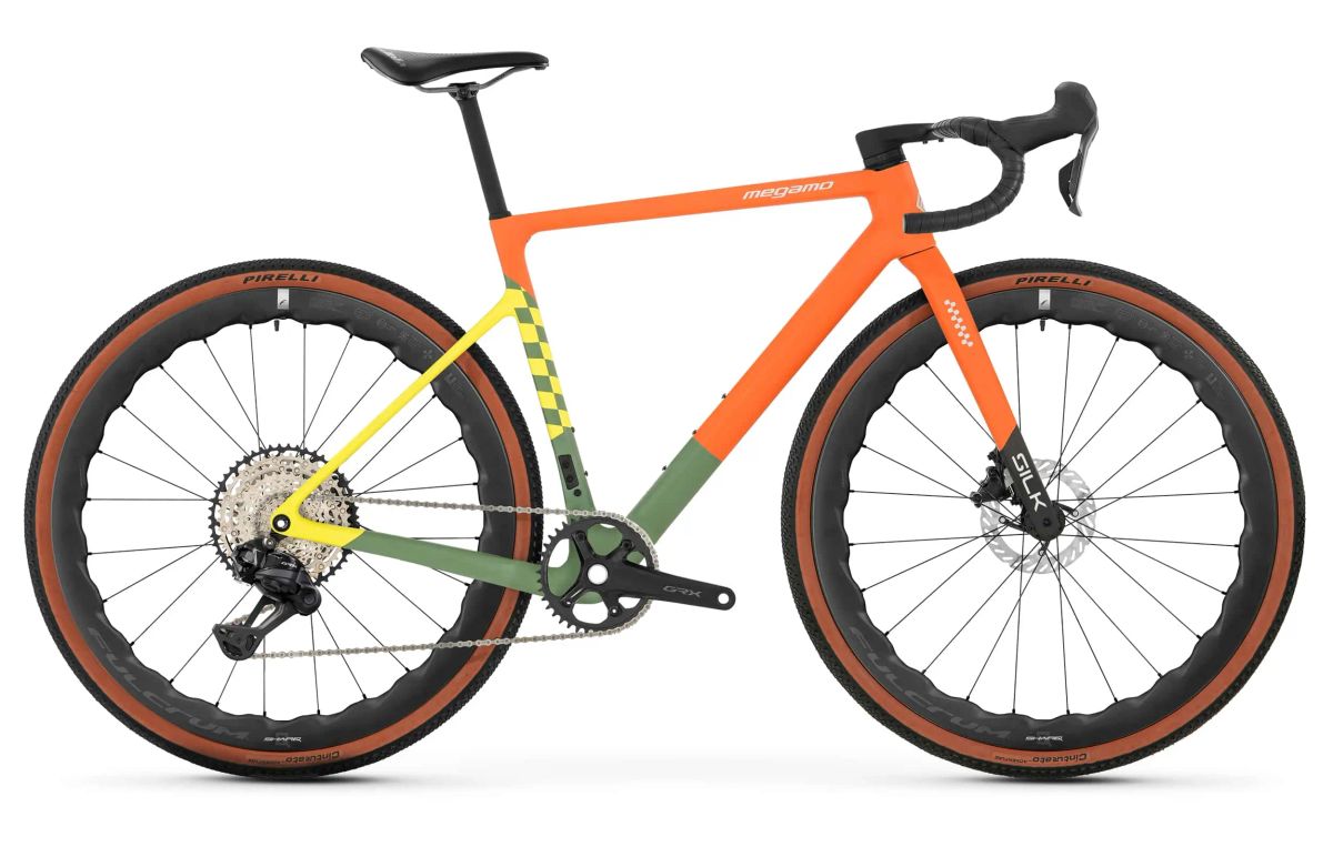 La Megamo Silk 03 (2026) es una bicicleta de carretera de alta gama, ideal para ciclistas adultos que buscan rendimiento y comodidad. Con cuadro de aluminio y carbono, ruedas de alto rendimiento y frenos de disco hidráulicos, ofrece una experiencia de pedaleo eficiente y segura. Diseño aerodinámico en naranja, verde y negro con detalles amarillos.