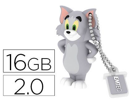 Memoria USB EMTEC de 16GB con diseño de Tom el gato, ideal para amantes de los clásicos animados. Fabricada en plástico con acabado detallado, incluye cadena metálica para mayor comodidad. Compatible con USB 2.0, perfecta para almacenar archivos, fotos o música de forma divertida y práctica.