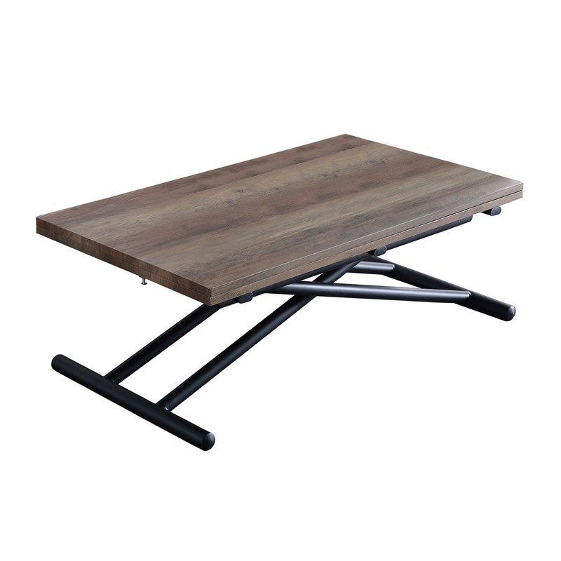 Mesa centro elevable de madera en natural oscuro y negro, 100 x 50/100 x 48/74 cm | Up-down