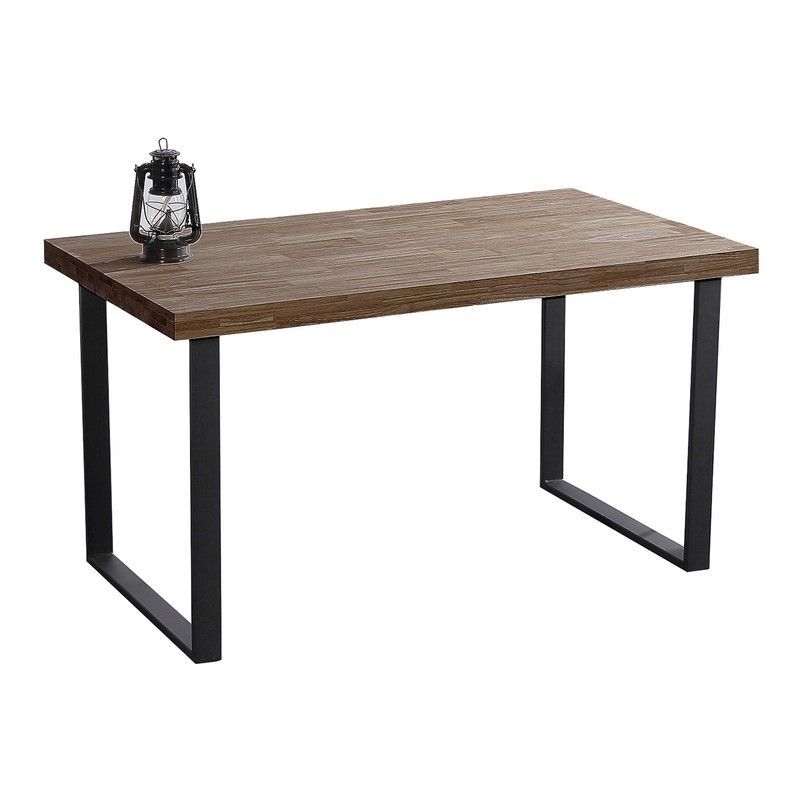 Mesa comedor de roble y metal en natural oscuro y negro, 140 x 80 x 76,5 cm | Natural