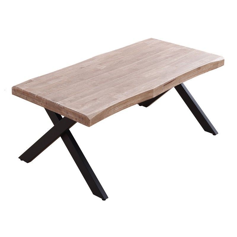 Mesa de centro elevable Xena con diseño industrial y moderno, ideal para salones contemporáneos. Fabricada con madera de roble natural y patas de metal negro en forma de X, ofrece una altura ajustable entre 47 y 62 cm. Su acabado rústico y elegante combina perfectamente con estilos escandinavos, loft o minimalistas. Perfecta para espacios que busca